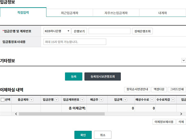 Step 2. 입금정보 입력방식을 선택 후 정보를 입력합니다.