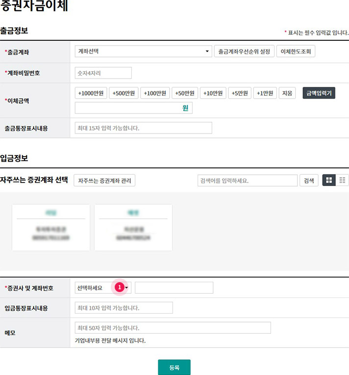 • ① 전자금융공동망에 가입되어 있지 않은 증권사만 선택 가능합니다.