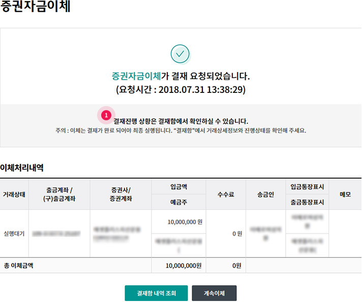 Step 3. 증권자금이체신청이 완료 되었습니다.
