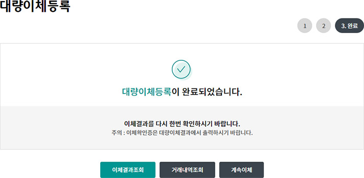 • ① 압축기장 선택여부 : 선택하시면 출금통장에서 이체금액이 한 건으로 출금되고, 선택하지 않으면 상세 건으로 출금되어집니다.
