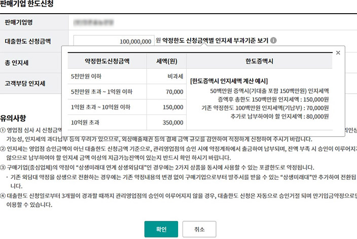 Step 5. 인지세 부과기준을 참고하신 후 ‘확인’ 버튼을 클릭합니다.