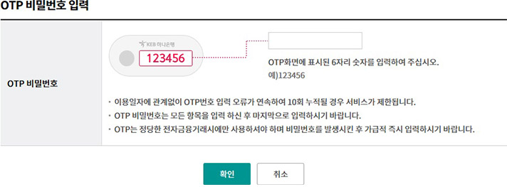 Step 7. OTP비밀번호를 입력, 확인버튼을 클릭하고 인증서 암호를 입력합니다.