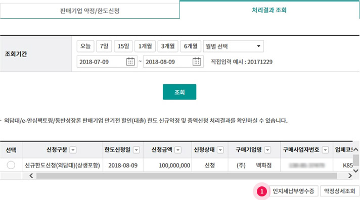 Step 9. ‘만기전 할인(대출)한도’ 신청 후 처리결과를 조회할 수 있습니다.