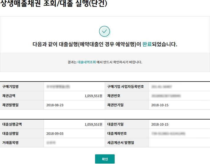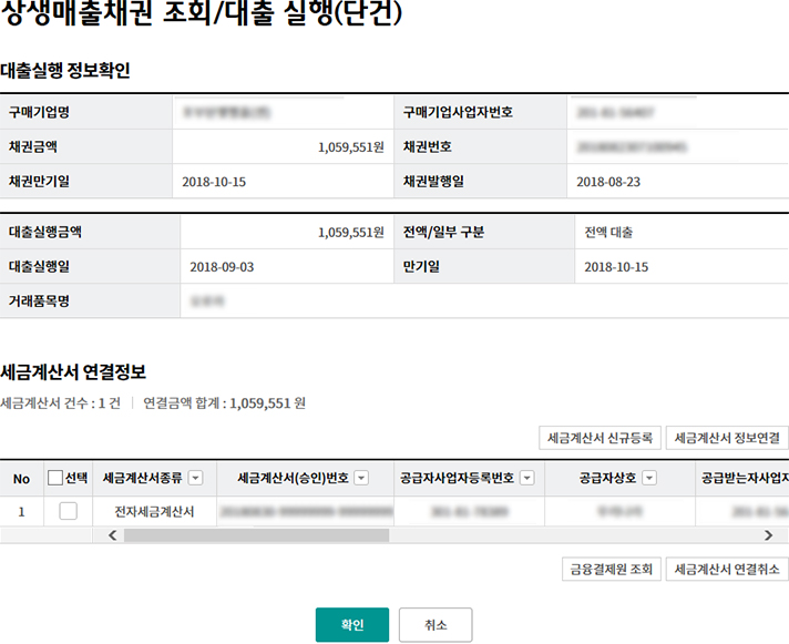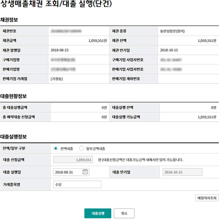 상생매출채권 조회/대출 실행(단건)