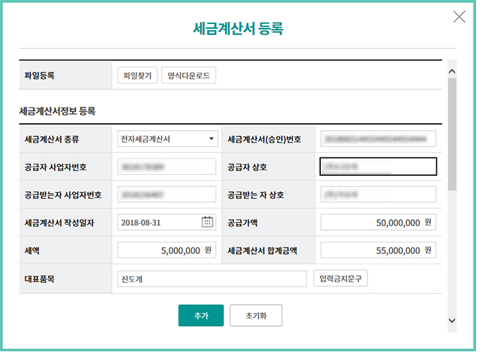 Step 4. 세금계산서 신규등록 화면입니다.