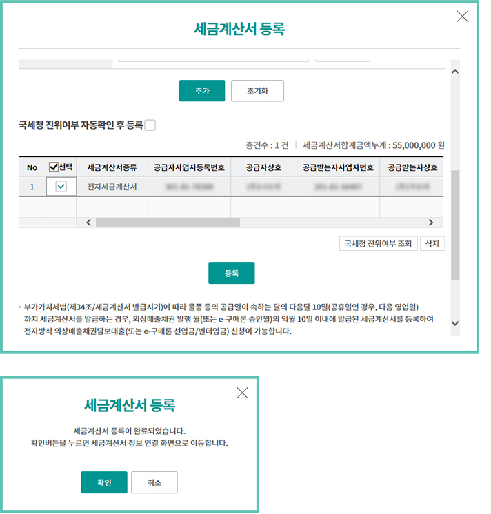 Step 6. 세금계산서 등록이 완료되었습니다.