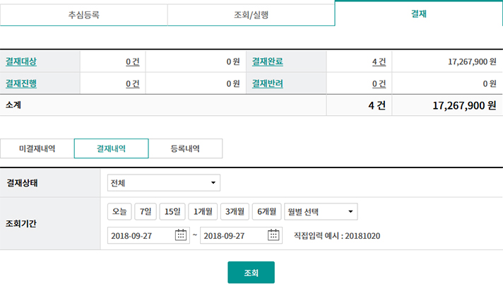 • 승인 명세 조회 및 선입금/벤더입금(대출)실행
