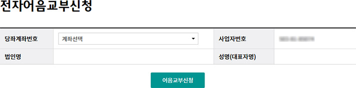 Step 1. 계좌번호를 선택한 후 어음교부신청 버튼을 클릭합니다.