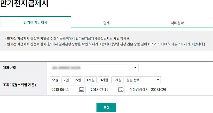 Step 1. 계좌번호, 조회기간을 선택하고 조회 버튼을 클릭합니다.