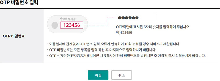 Step 4. OTP번호 및 인증서암호를 입력합니다.