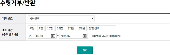 Step 1. 계좌번호, 조회기간을 선택한 후 조회 버튼을 클릭합니다.