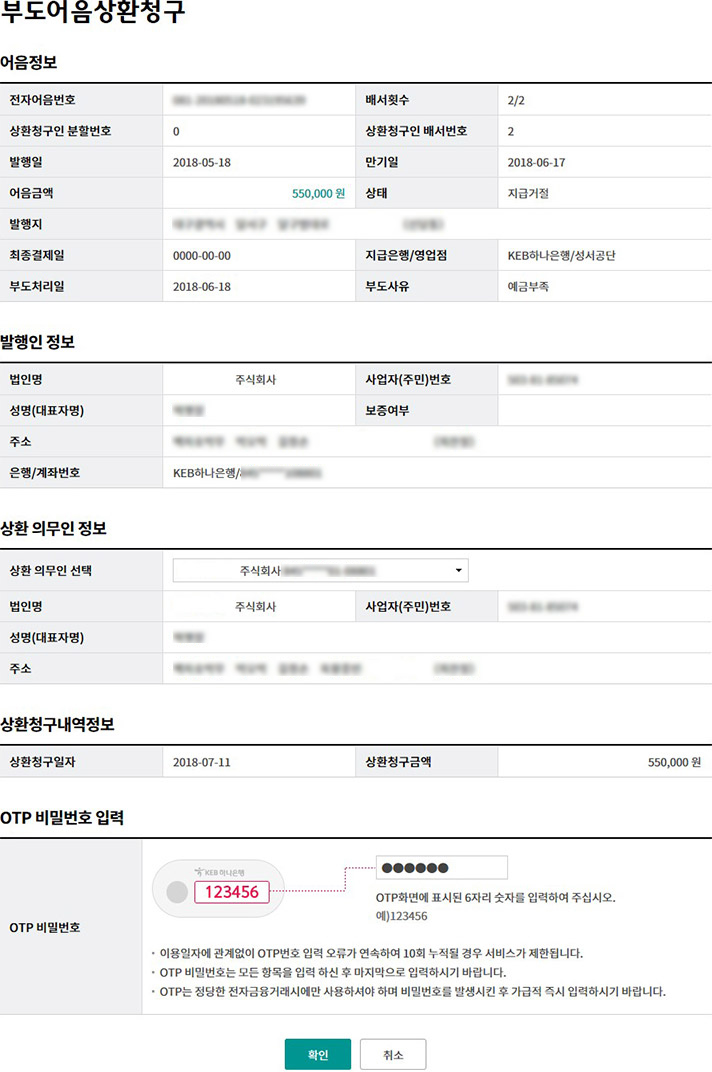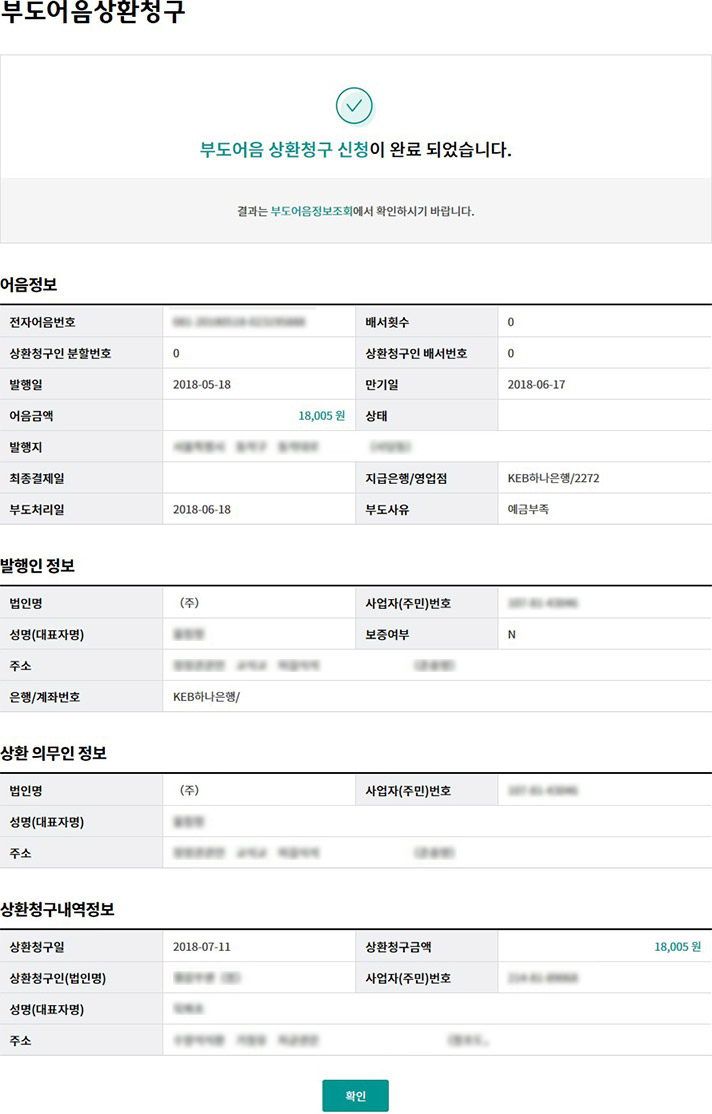 Step 5. 부도어음 상환청구 신청완료화면 입니다.