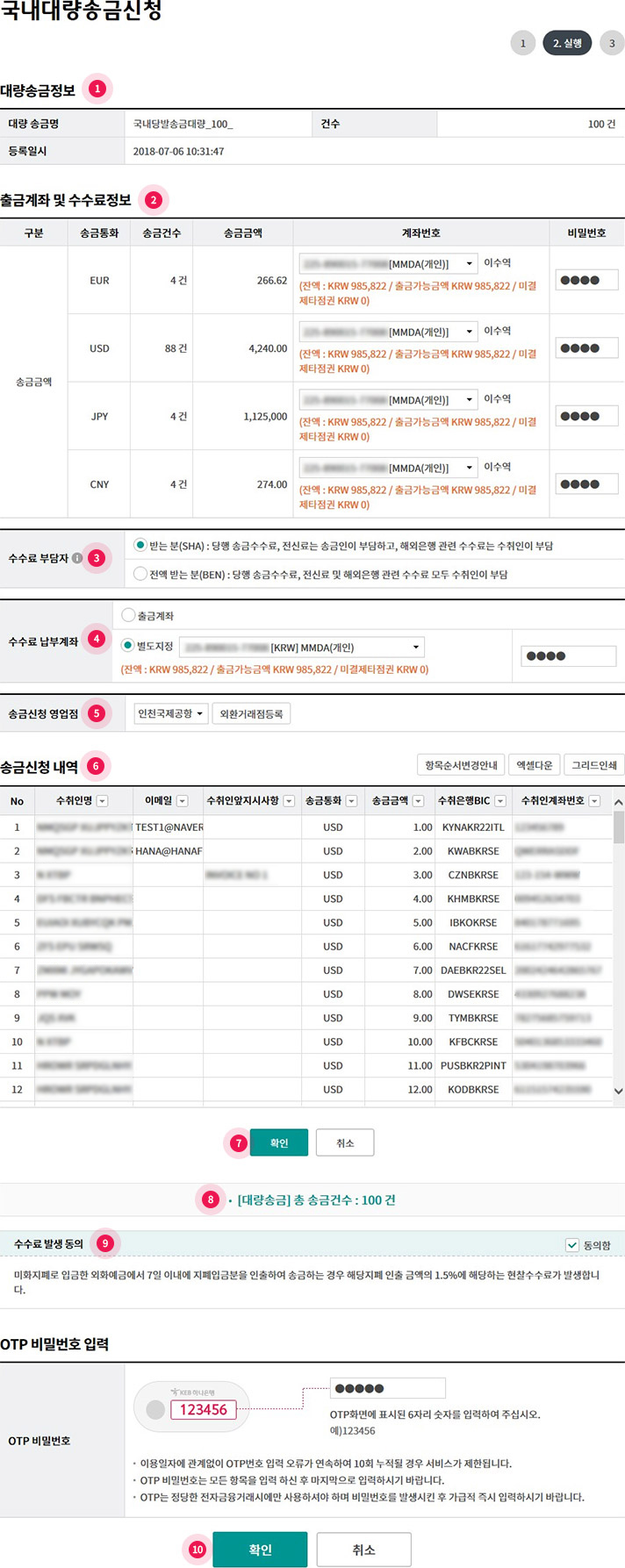 ⑥ 파일로 등록한 송금신청내역을 확인합니다.
