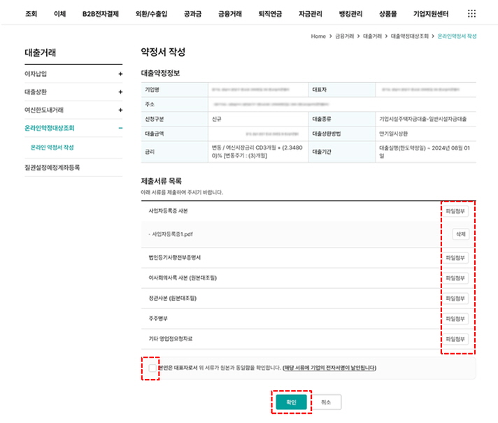 ② 제출서류가 원본과 동일함을 확인하는 내용을 읽고, 체크합니다.