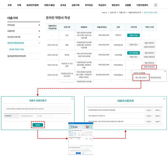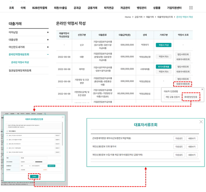 ② 대표자의 휴대폰본인인증 후, 대표자 서류를 조회 할 수 있습니다.