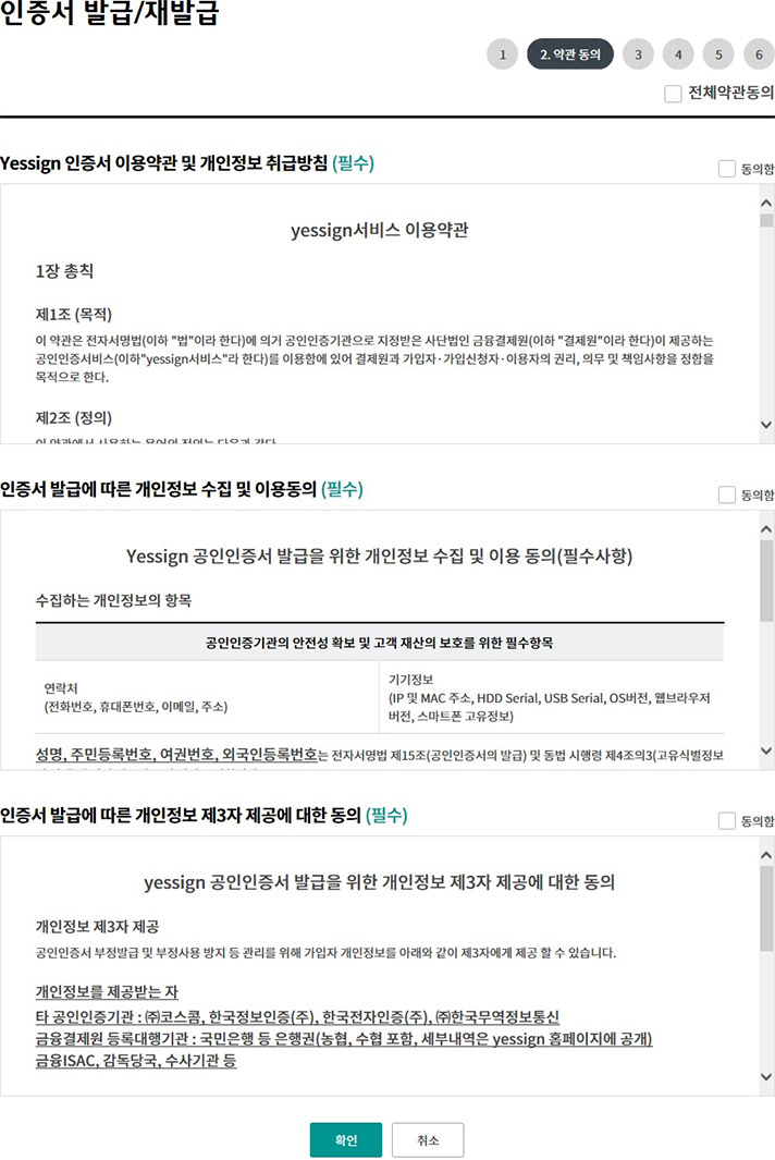 Step 3. 인증서 발급을 위한 필수 약관에 동의합니다.