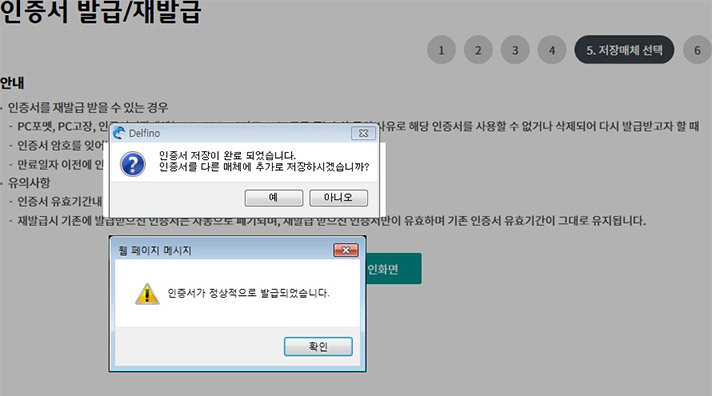 Step 7. 추가 저장여부를 확인 후, 인증서 발급이 완료되었습니다.