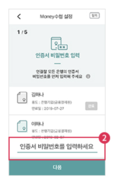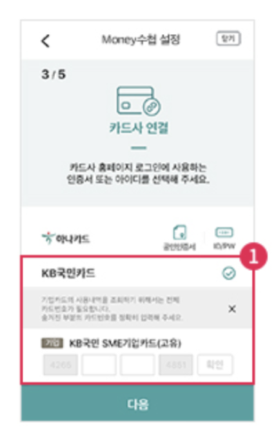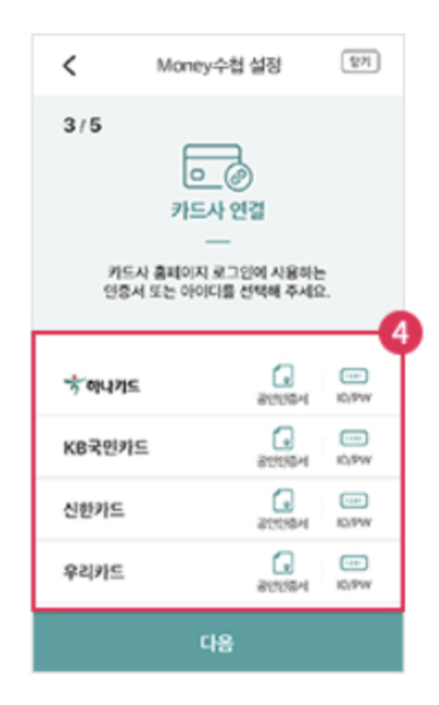 4. 카드사 연결- 공인인증서 : Step1에서 연결한