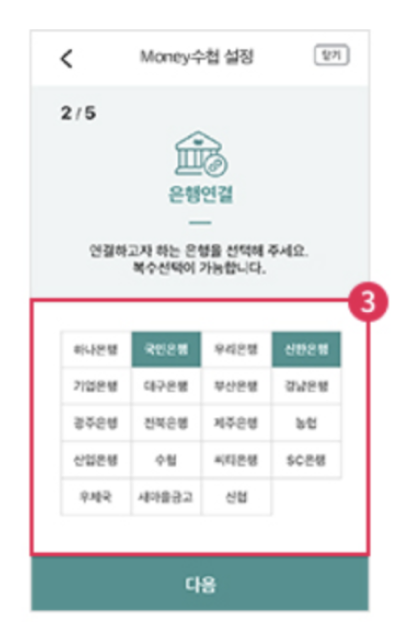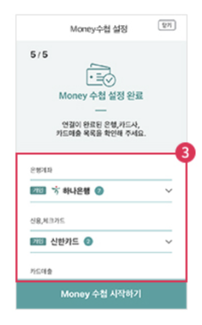 7. Money 수첩 설정 완료- 등록된 금융기관 정보 확인- Money 수첩 시작하기